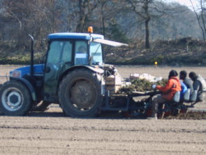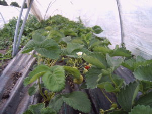 Wij doen dit met gekoelde planten. Dit zijn planten die in het najaar buiten opgekweekt en in december ingevroren worden. In het voorjaar planten wij deze aardbeien gefaseerd zodat wij de hele zomer verse aardbeien van eigen grond hebben.